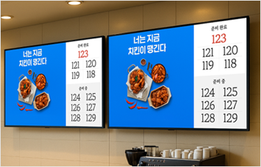주문 현황, 메뉴, 광고를 대형 화면으로 보여주는 시스템입니다. 터치 한번으로 손님 호출이 가능하여 매장 운영을 효율적으로 할 수 있습니다.